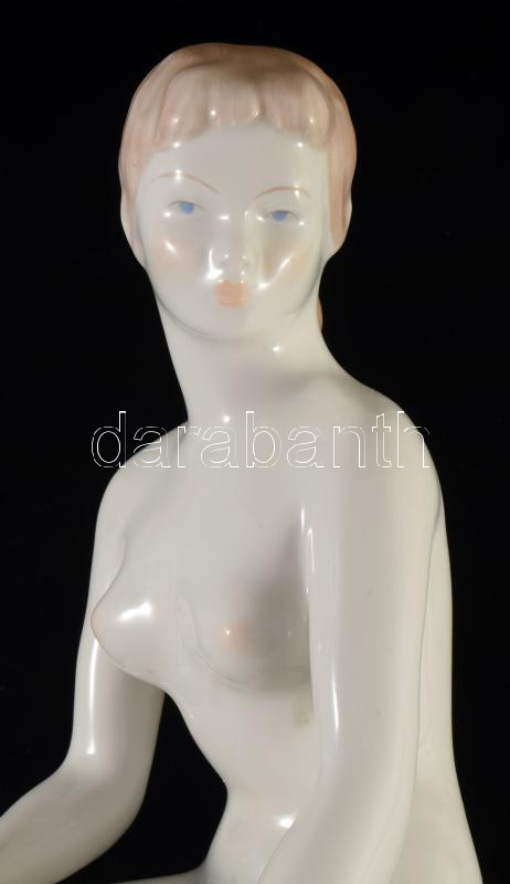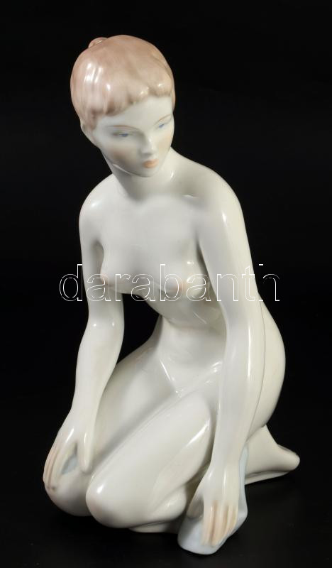 Aquincum térdelő női akt, jelzett, hibátlan, m: 21,5 cm