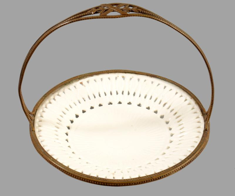 Áttört porcelán kosár, réz szerelékkel. Entw. Parté jelzéssel, hibátlan d: 19 cm