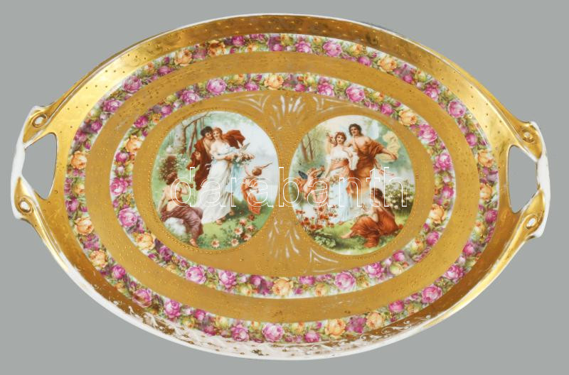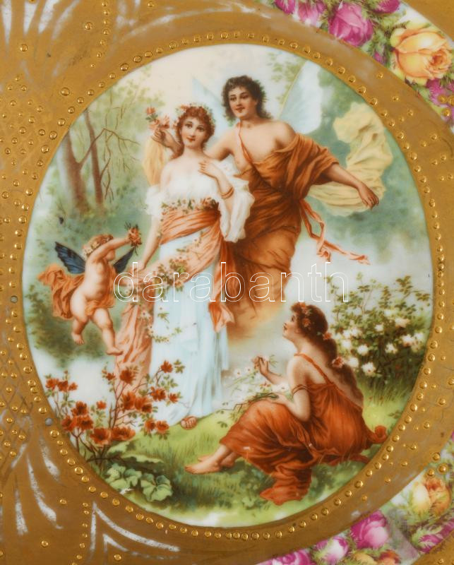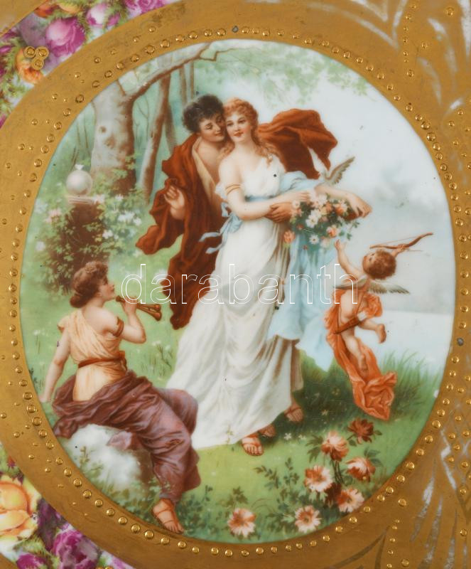 Cseh Alt Wien tál mitológiai jelenettel. Matricás, jelzett, kopással 48x35 cm