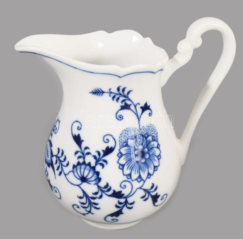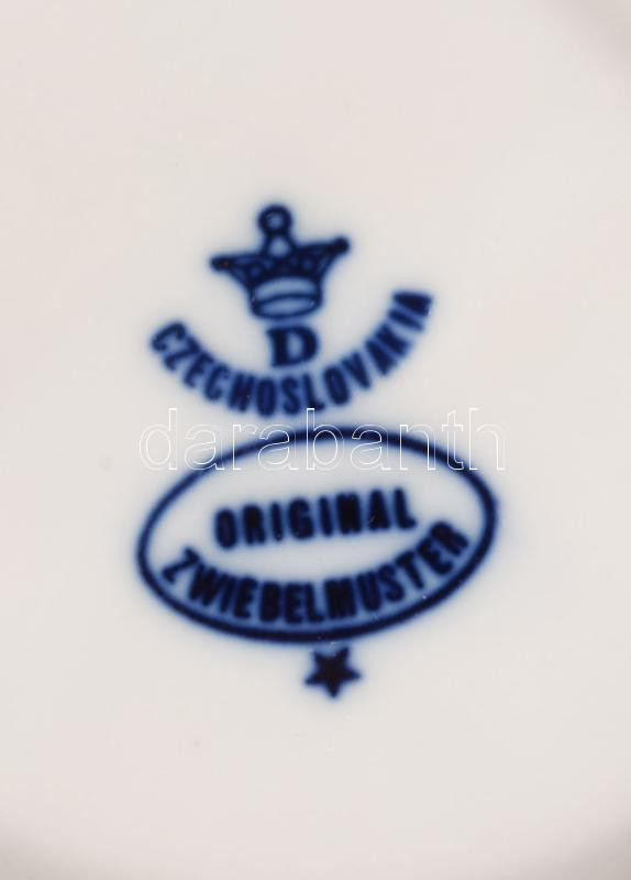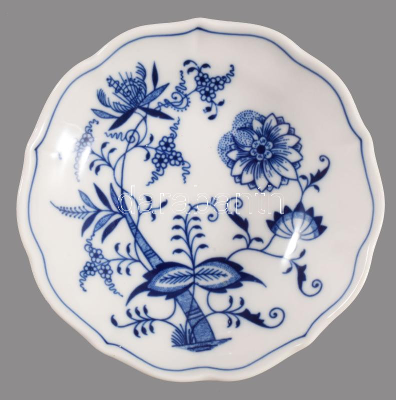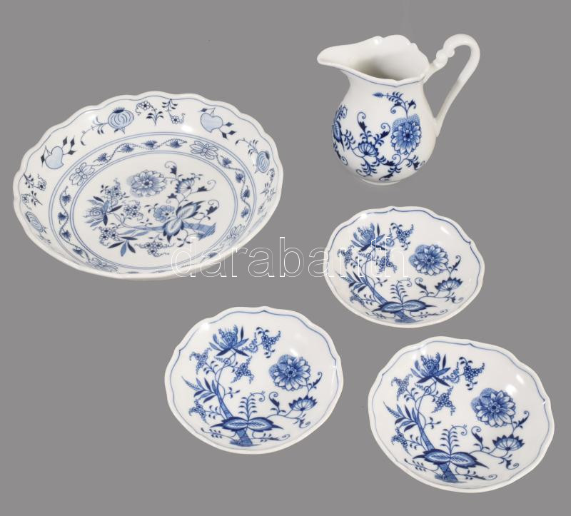 Dubi Bohemia hagymamintás kínáló, 3 tálka és kiöntő, jelzett, d: 24 cm