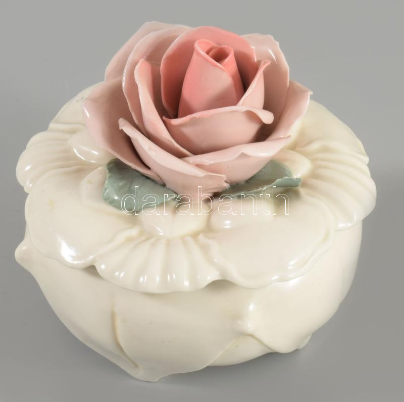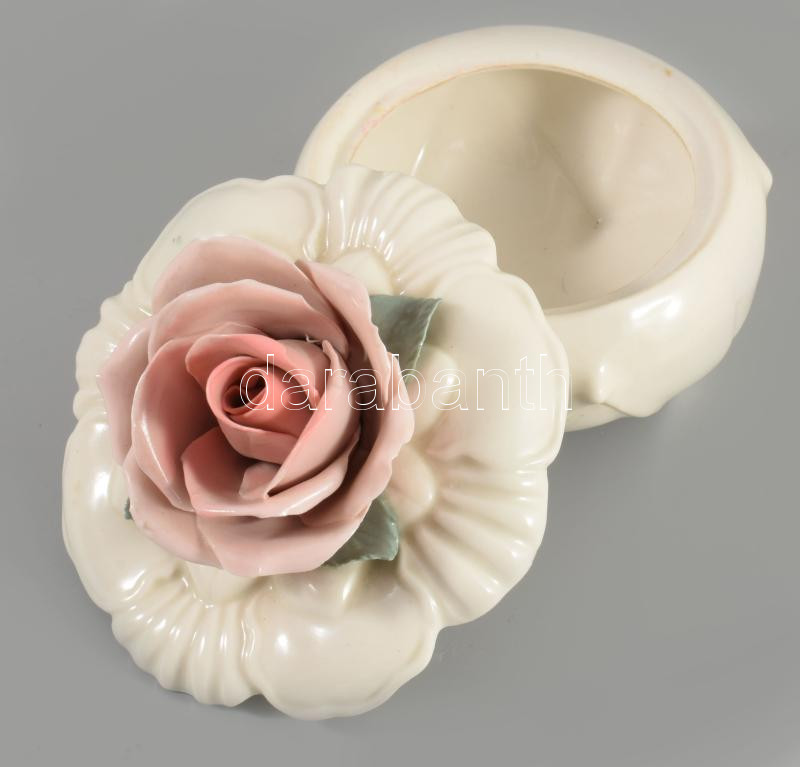 Ens ékszeres edény, rózsa fogóval, jelzett, hibátlan, m: 8,5 cm