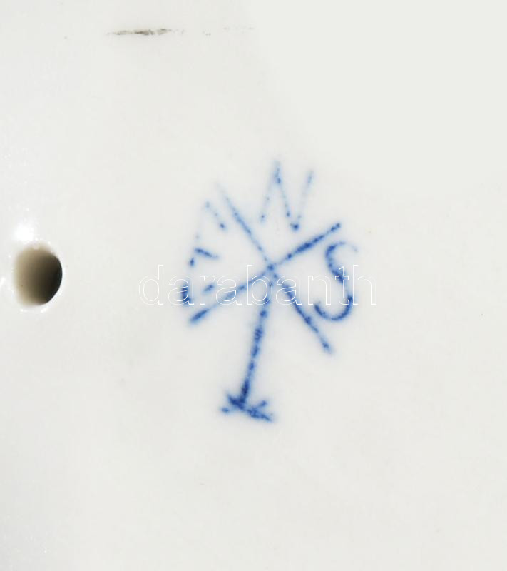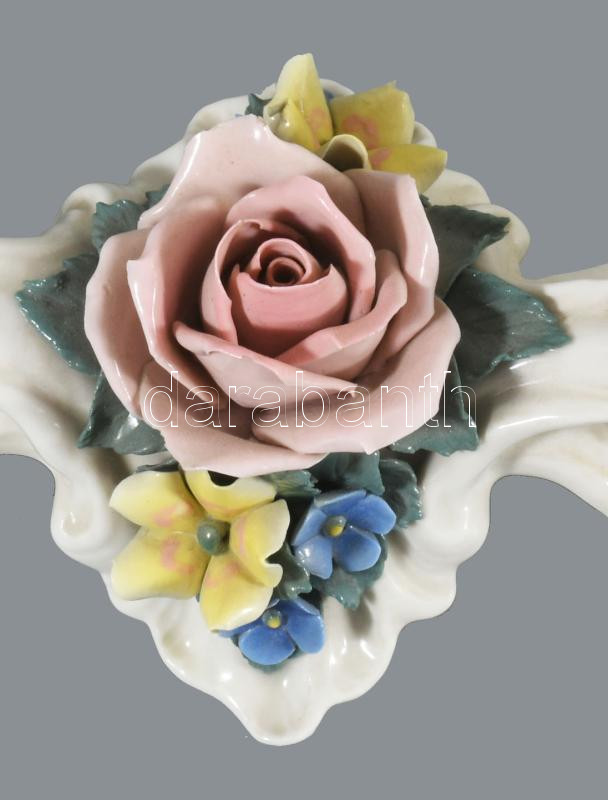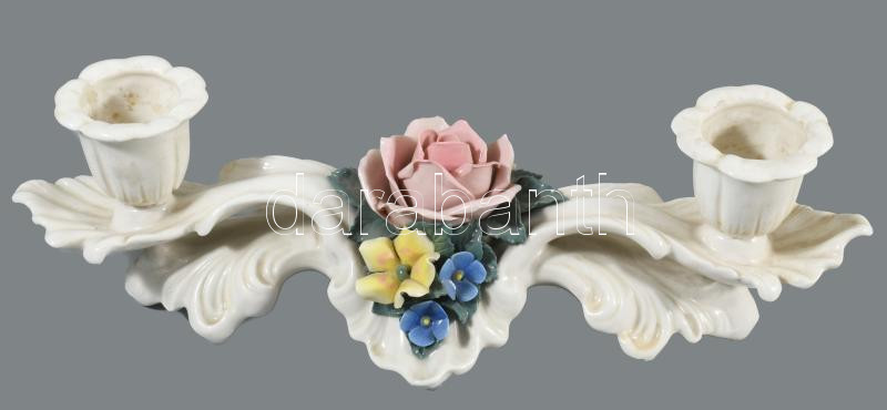Ens plasztikus virágmintás kétágú gyertyatartó, jelzett, minimális pattogzással, h: 27 cm