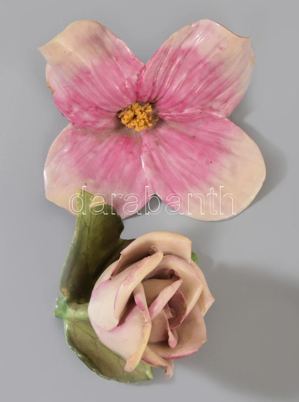 Herendi 2 darab plasztikus virág, hiánnyal, sérüléssel, h: 9-10 cm