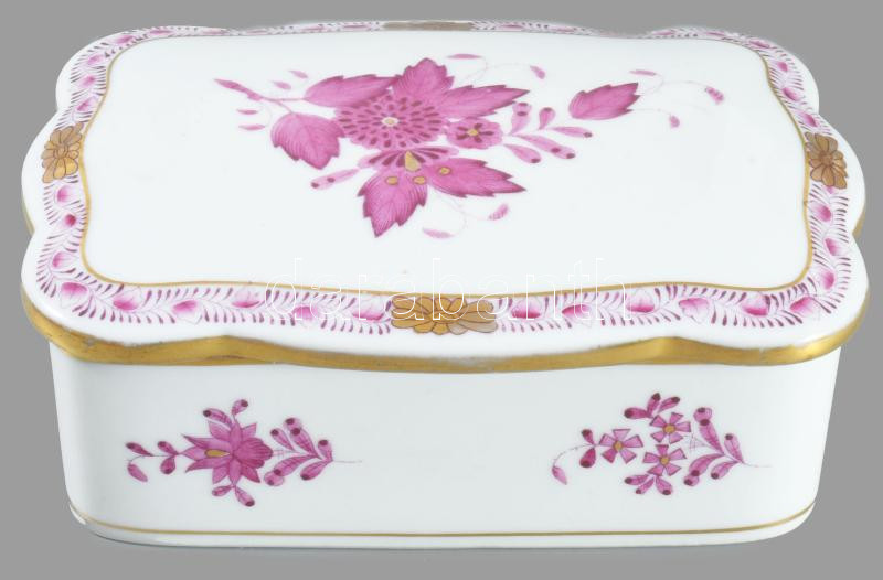 Herendi Apponyi mintás porcelán bonbonniere. Kézzel festett, jelzett, hibátlan 14x10 cm
