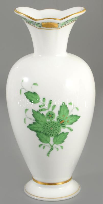 Herendi Apponyi zöld mintás váza. Jelzett, hibátlan, m: 19,5 cm