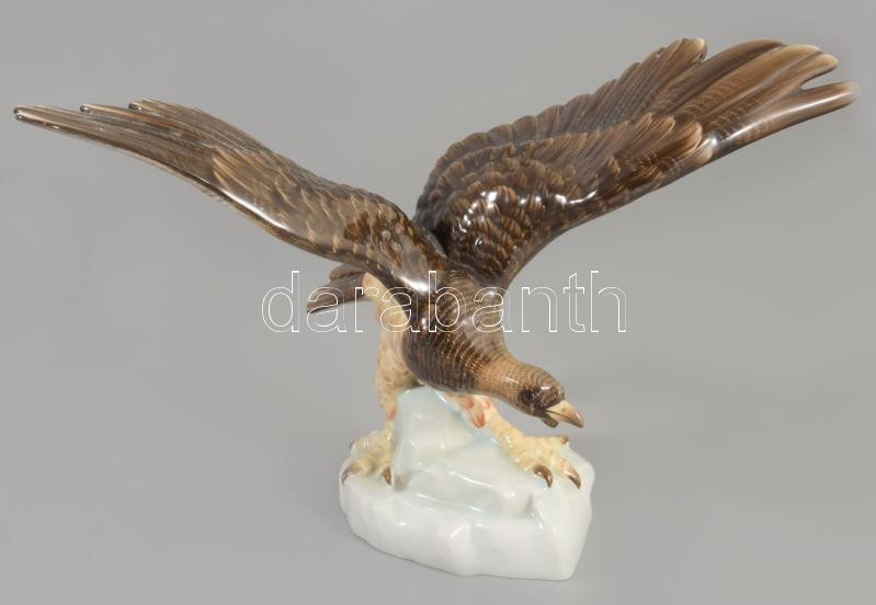 Herendi Turul madár, Kézzel festett, jelzett, sérült. 31x21 cm