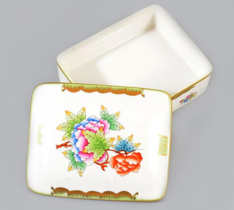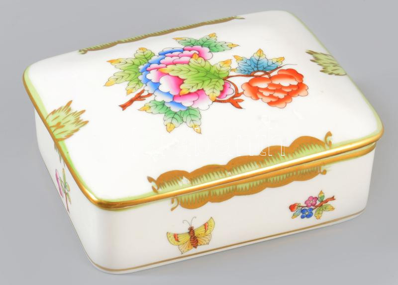 Herendi Viktória mintás doboz, jelzett, hibátlan, 8x10 cm