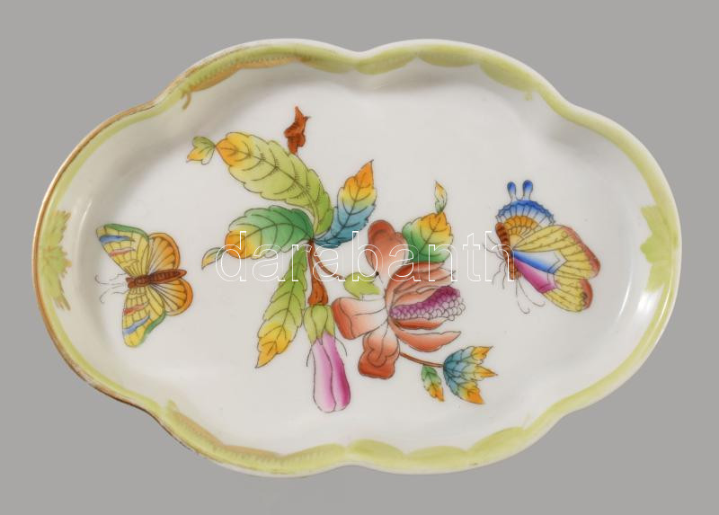 Herendi Viktória mintás ékszeres edény, jelzett, kis aranykopással, 13,5x9 cm