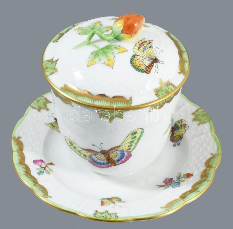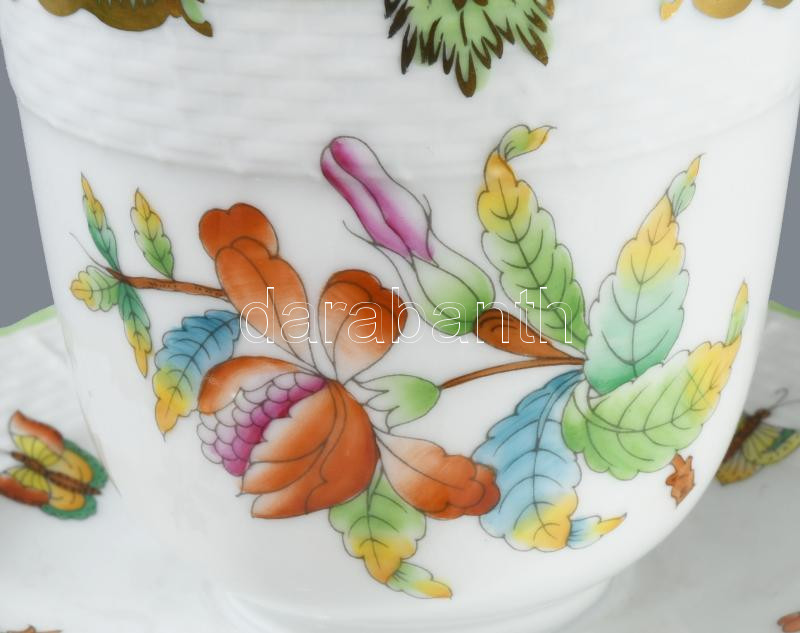 Herendi Viktória mintás fedeles kakaós csésze. kézzel festett, jelzett, hibátlan, 12 cm