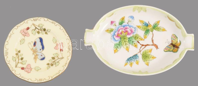 Herendi Viktória mintás hamuzó, kopott + Zsolnay Pillangó mintás tálka d: 8,5 cm