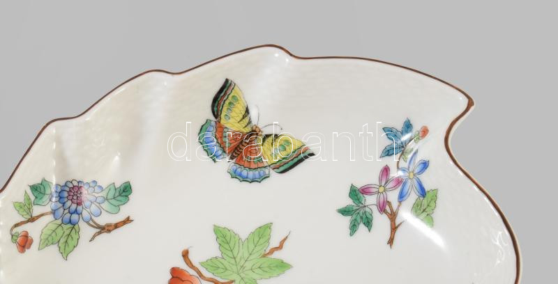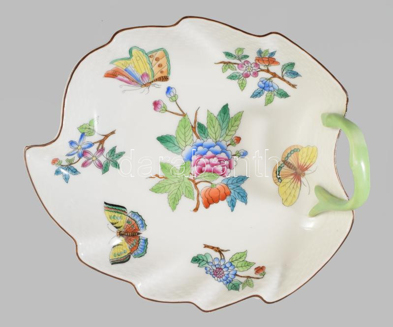 Herendi Viktória mintás levél alakú kínáló, jelzett, hibátlan, 20x17 cm