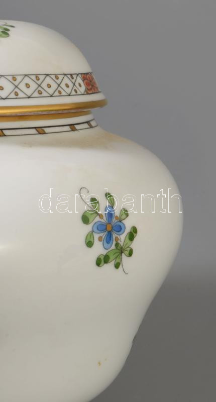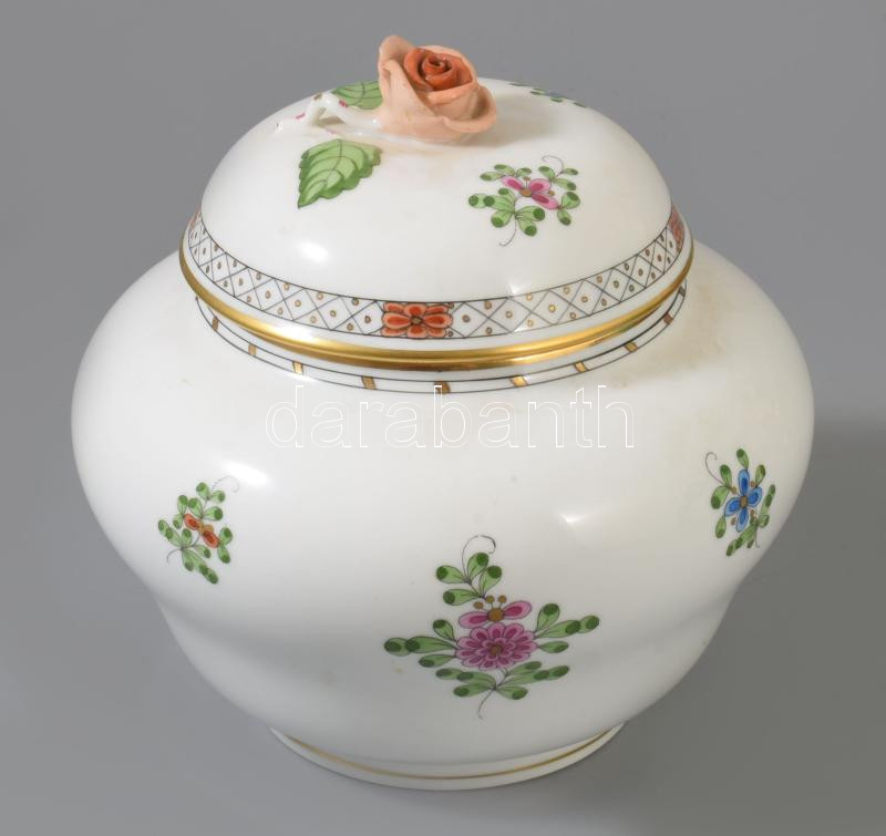 Herendi Waldstein multicolor mintás fedeles edény, rózsa fogóval, jelzett, hibátlan, m: 16 cm