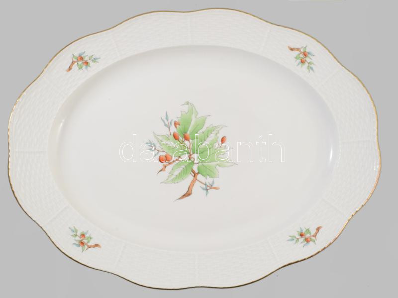 Herendi hecsedli mintás ovális kínálótál. Jelzett, 2. oszt. hibátlan, 36x27 cm