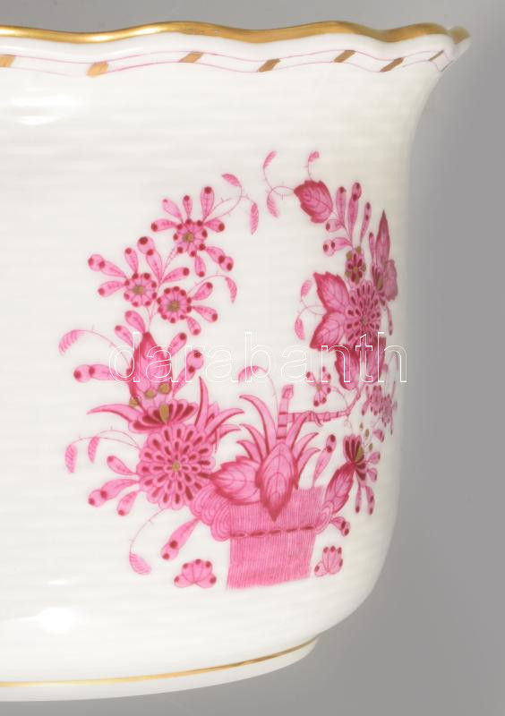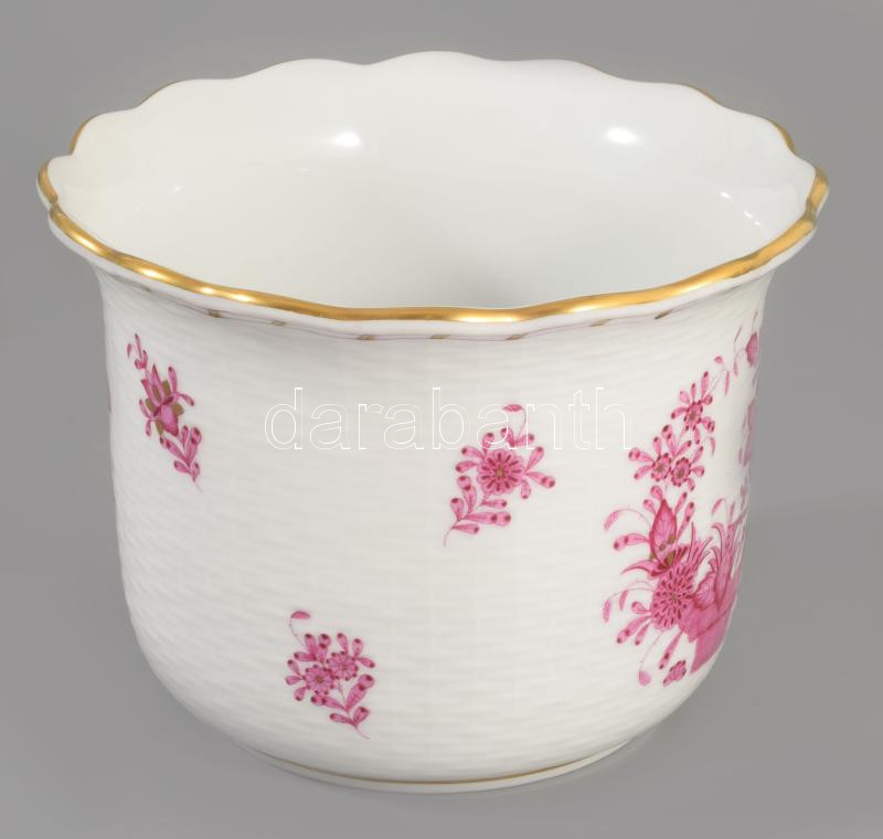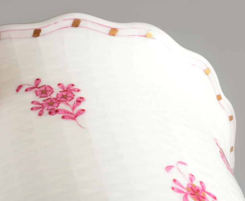 Herendi indai kosár mintás porcelán váza. Kézzel festett, jelzett, hibátlan d: 15 cm m: 11 cm