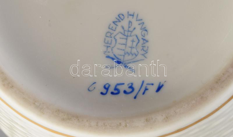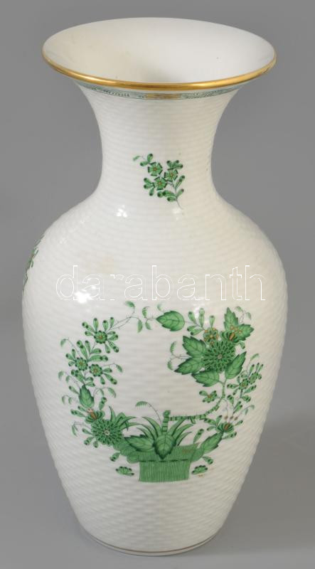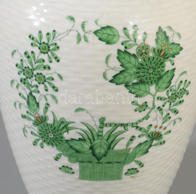 Herendi indiai kosár zöld mintás fonott felületű váza, jelzett, hibátlan, m: 25 cm