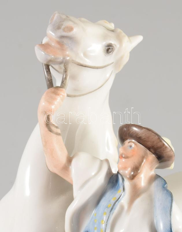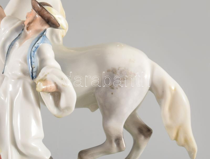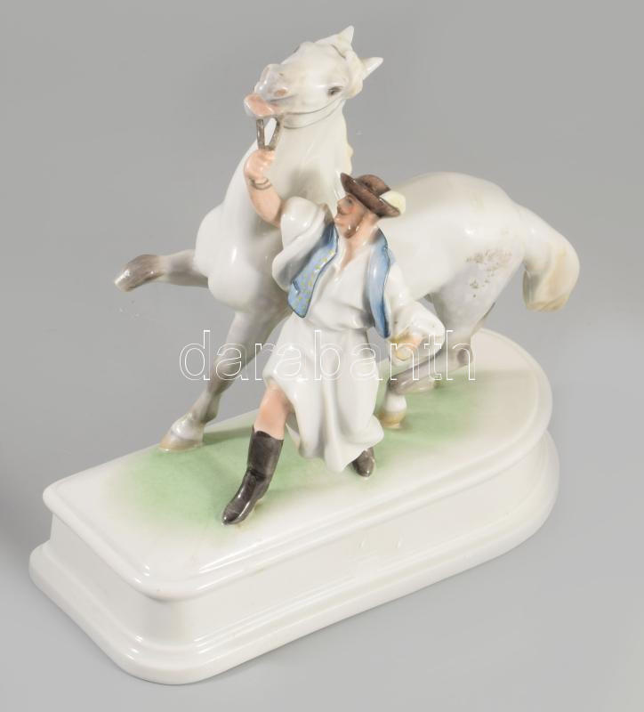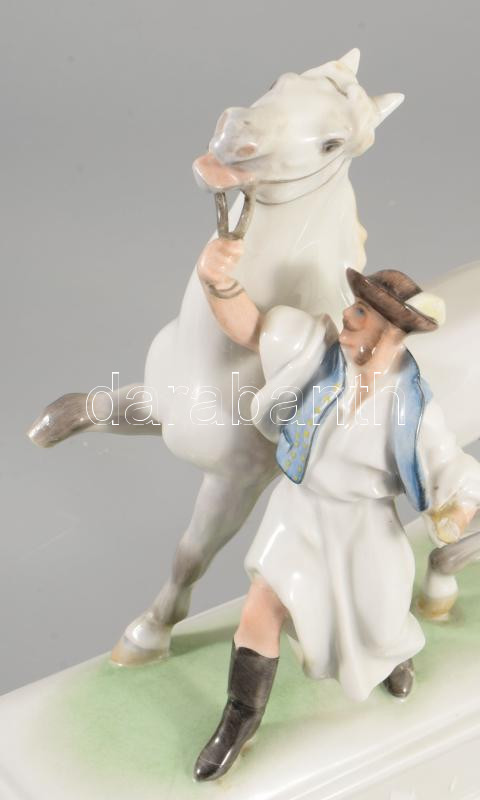 Herendi lovát fékező csikós. Kézzel festett, jelzett, sérült, hiányos. 19x21 cm