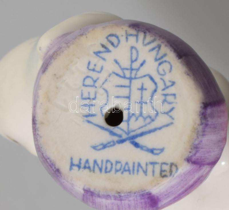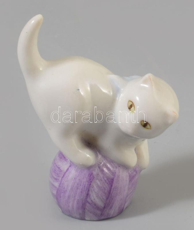 Herendi macska gombolyagon, jelzett, kézzel festett, hibátlan, m: 5,5 cm