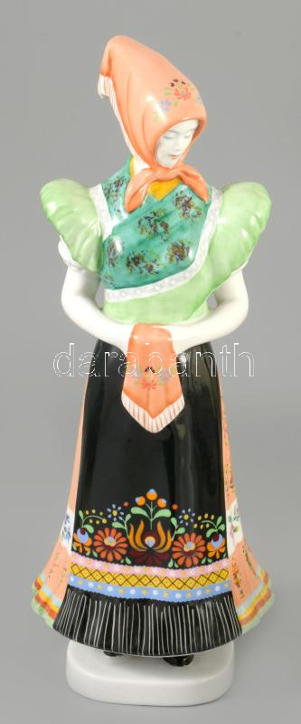 Hollóházi Matyónő. Jelzett, kézzel festett, égetési nyomokkal az alján, m: 29,5 cm