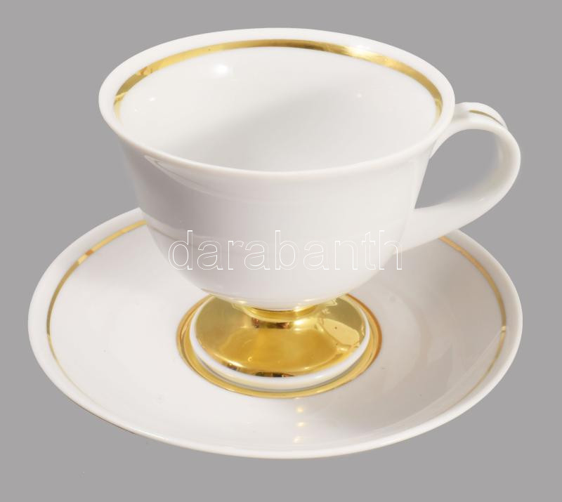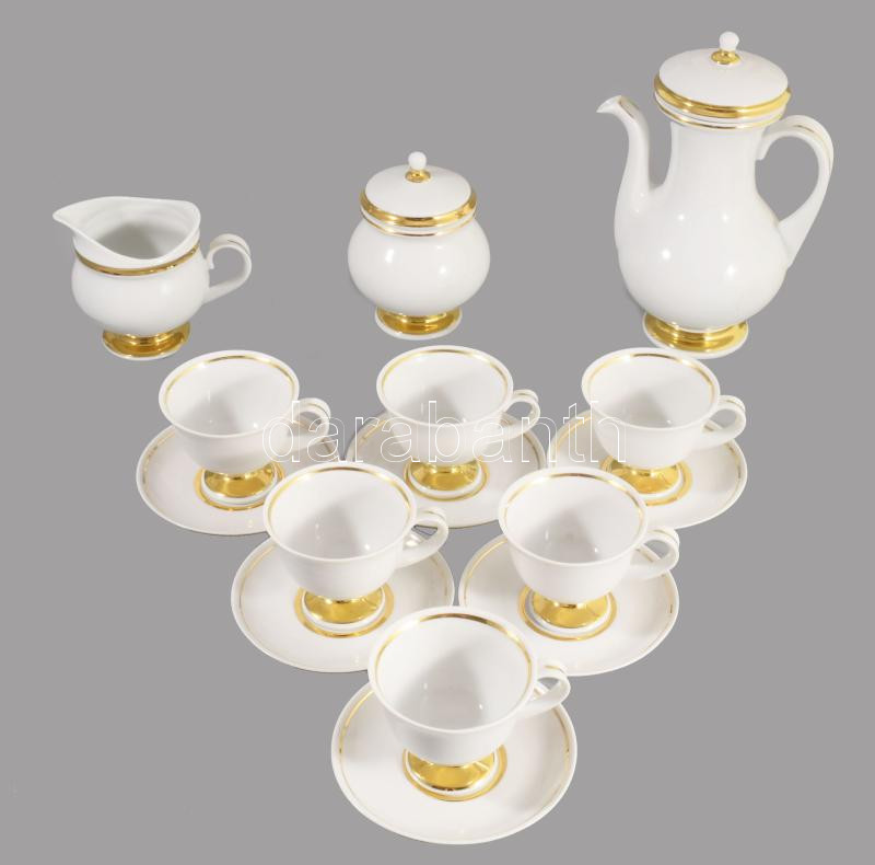 Hollóházi aranycsíkozott mokkás / kávés készlet, jelzett, teljes, hibátlan.