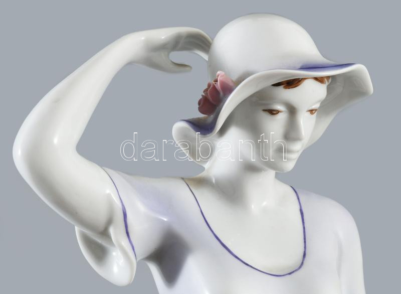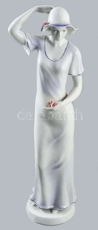 Hollóházi kalapos hölgy, kézzel festett, jelzett, hibátlan, m: 42 cm