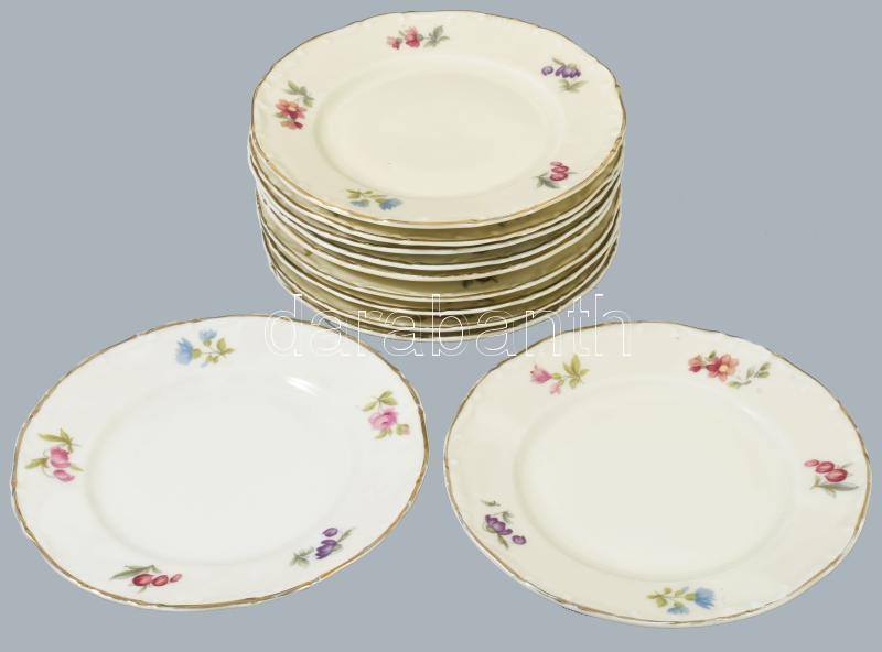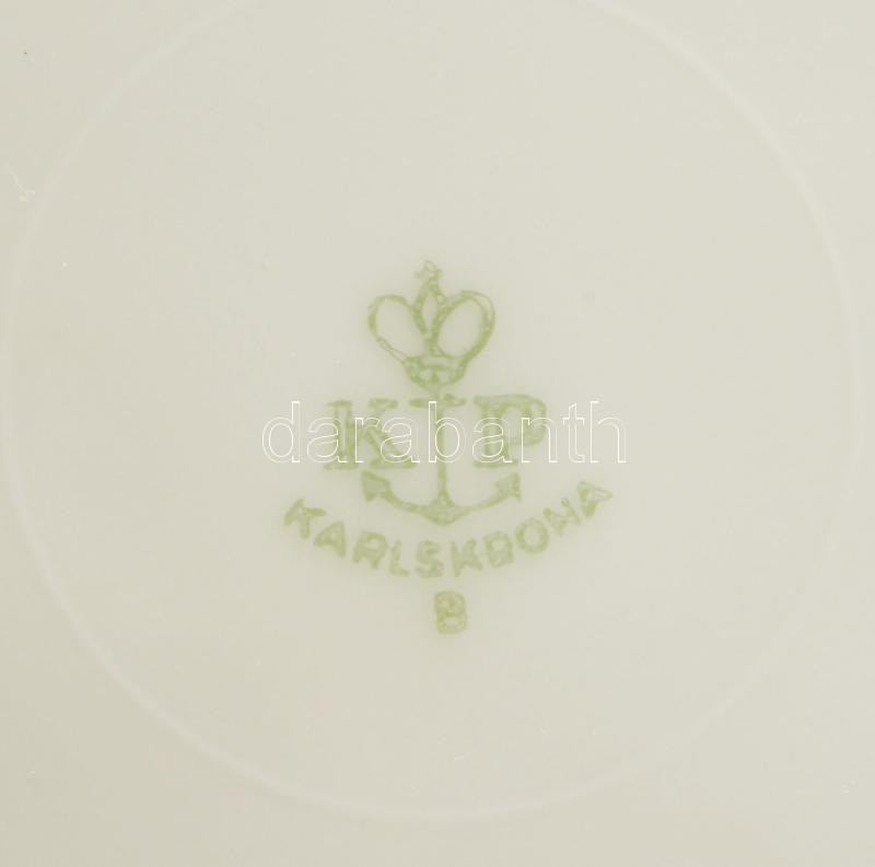 Karlskrona svéd porcelán 10 darabos süteményes tányér szett, extra sérült darabbal, jelzett, kis kopással, d: 18 cm