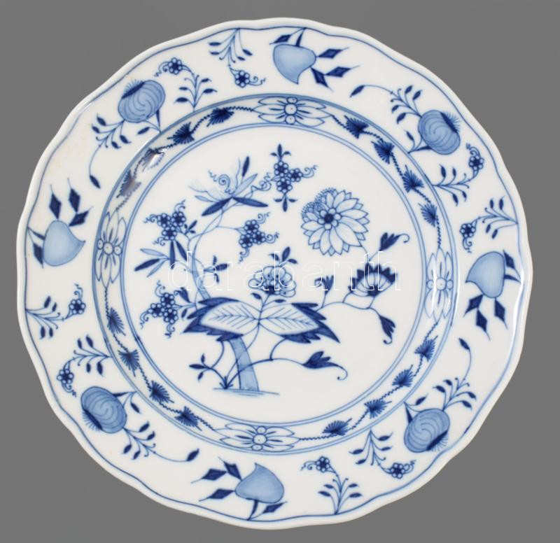 Meissen hagymamintás nagytányér / mélytányér készlet, 11 darab, jelzett, kardos jelzés, hibátlan, d: 24 cm