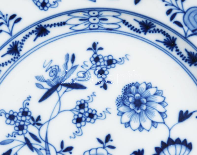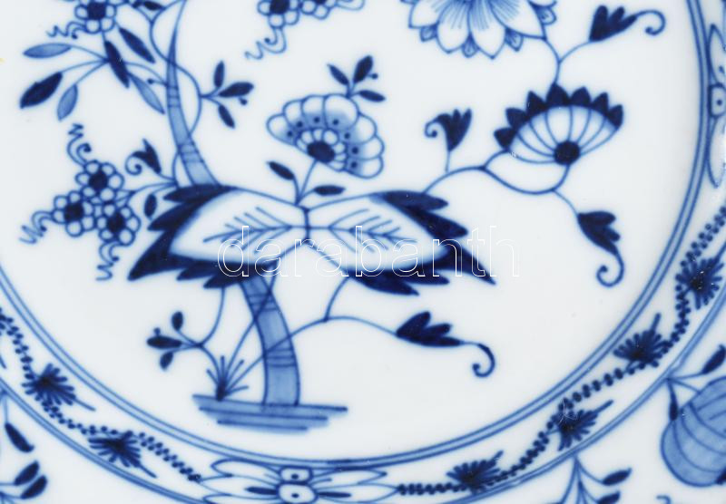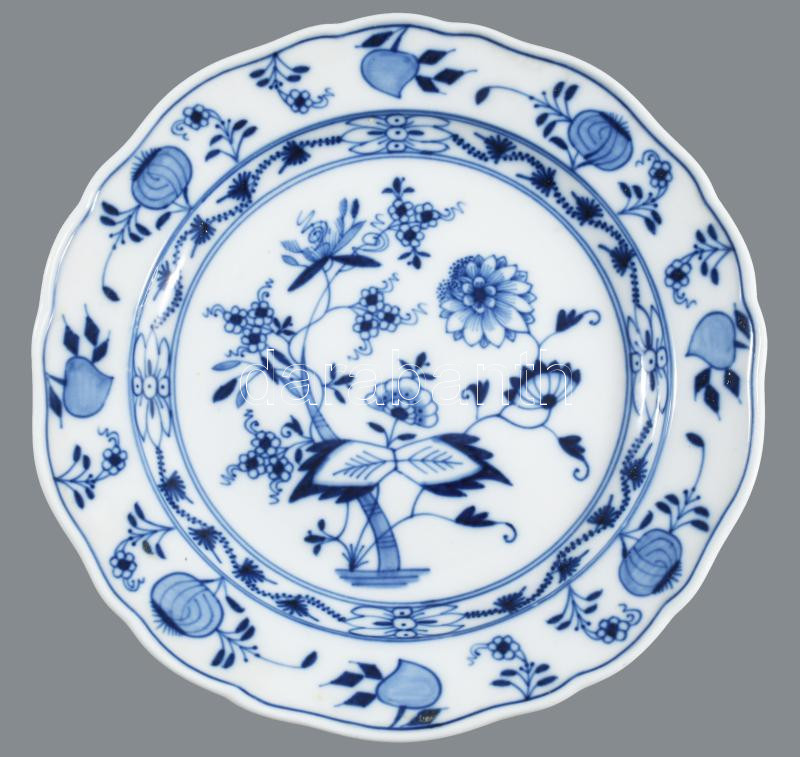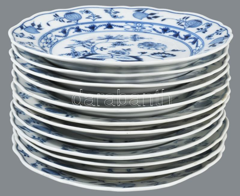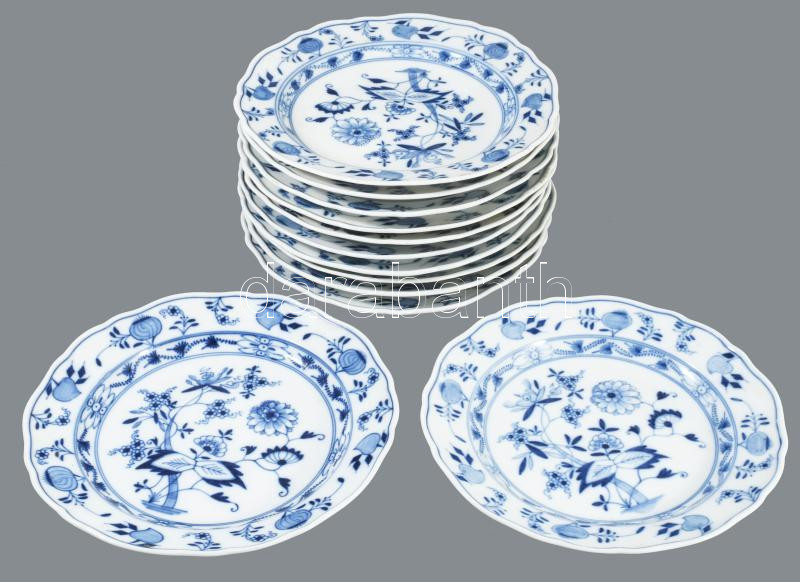 Meissen hagymamintás süteményes tányér készlet, 12 darab, jelzett, kardos jelzés, hibátlan, d: d: 21 cm