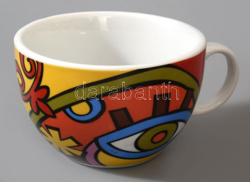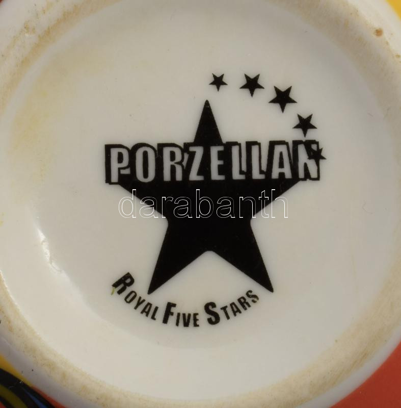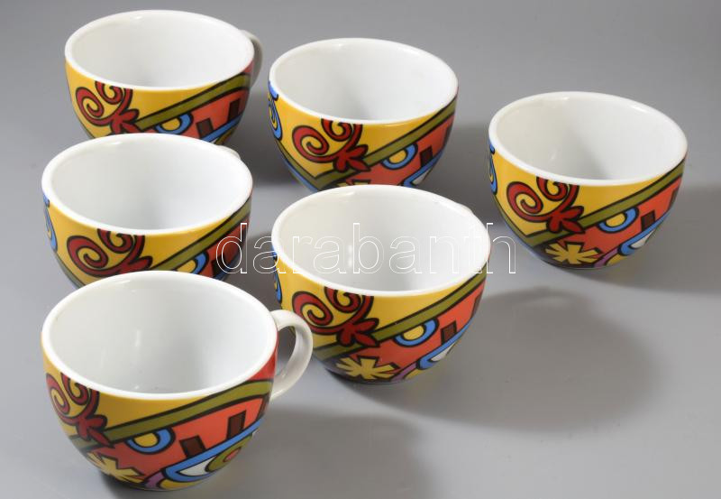 Modernista díszítésű 6 darabos vastag csésze szett, jelzett, 11x7 cm