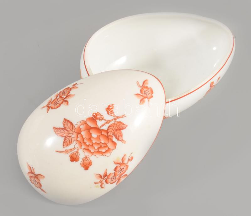Óherendi Herendi Vörös Eton mintás tojás bonbonniere, kézzel festett, jelzett, hibátlan, 11 cm