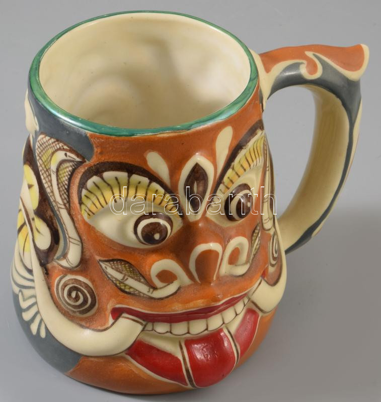 Sri Lanka-i maszkmintás bögre, jelzett, hibátlan, m: 11,5 cm