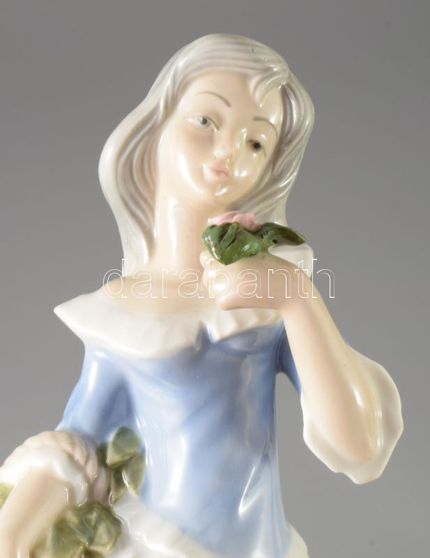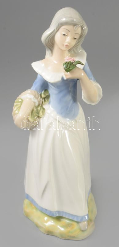 Tengra spanyol porcelán lány figura, jelzett, hibátlan, m: 22 cm