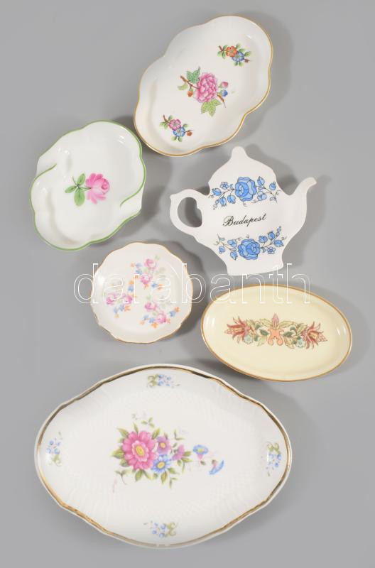 Vegyes porcleán tálkák benne Herendi, Zsolnay, Hollóházi Aquincum, Kalocsai, hibátlanok