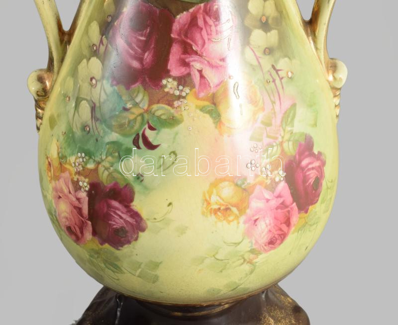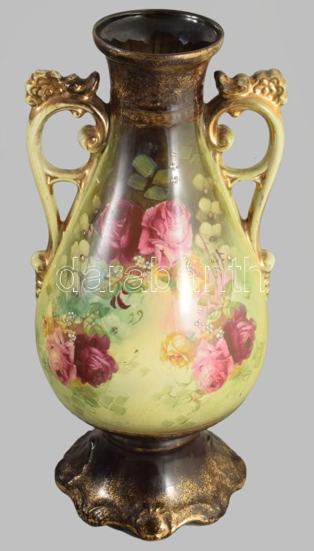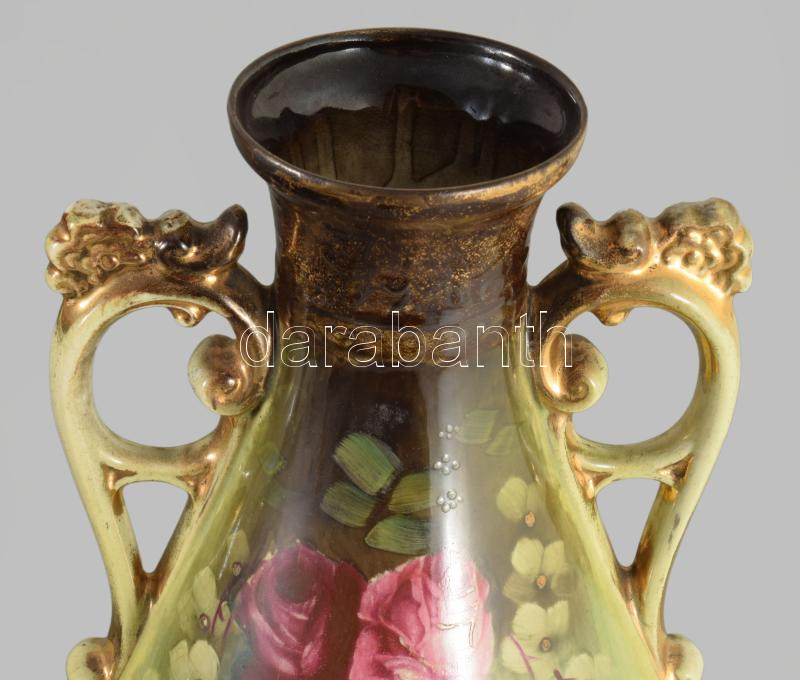 Vintage rózsamintás kétfüles váza, minimális kopással, m: 39 cm