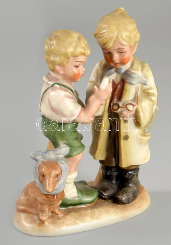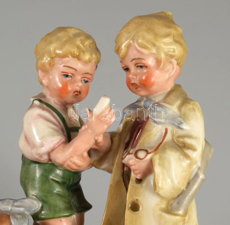 Wagner & Apel Bertram orvost játszó gyerekek. Jelzett, kézzel festett, ujjvégen sérüléssel, m: 11,5 cm