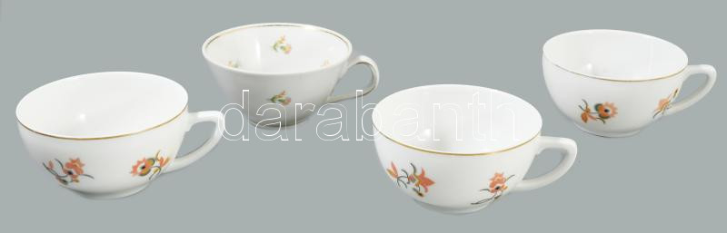 Zsolnay 4 darab virágmintás csésze, jelzett, kis kopással.