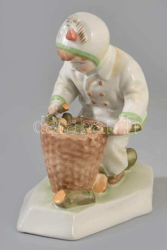 Zsolnay Rőzsegyűjtő gyermek. Terv.: Sinkó András. Jelzett, hibátlan, m: 15,5 cm