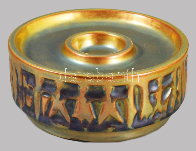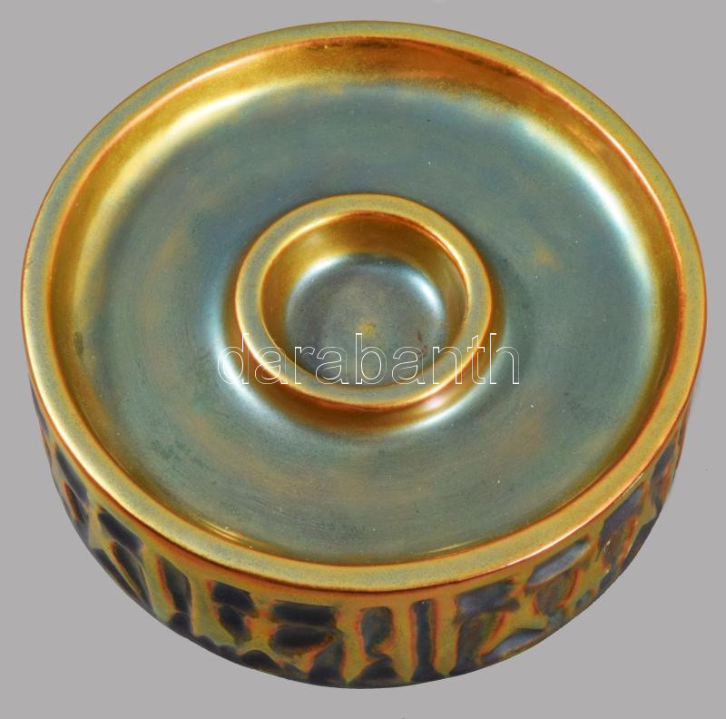 Zsolnay eozin mázas gyertyatartó, jelzett, hibátlan, 12x5 cm