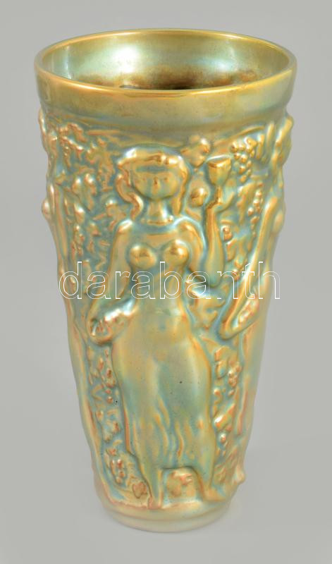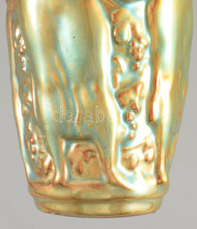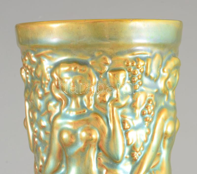 Zsolnay eozin mázas szüreti pohár. Jelzett, hibátlan, m: 16 cm
