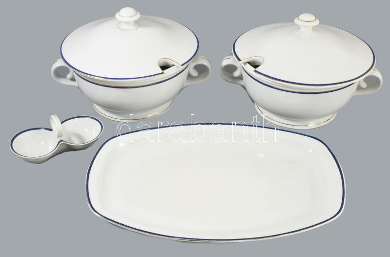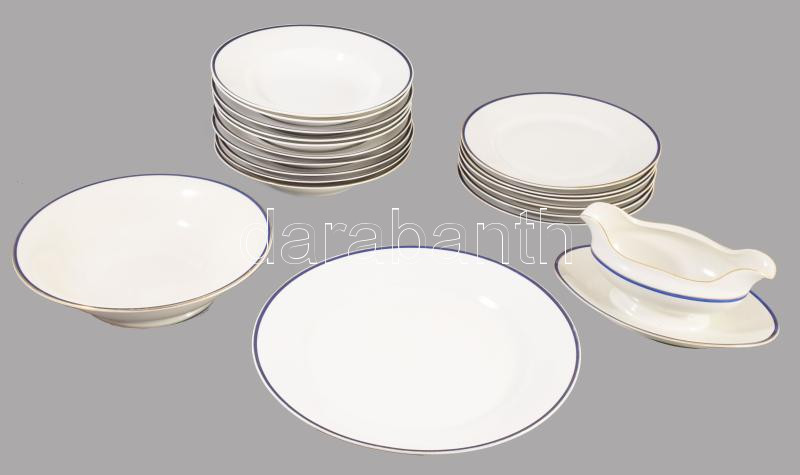 Zsolnay kékcsíkos peremű 44 részes étkészlet, jelzett, kopással, 1-1 hiba előfordulhat. /// KIZÁRÓLAG SZEMÉLYES ÁTVÉTEL, NEM POSTÁZZUK! / ONLY PERSONAL COLLECTION AT OUR OFFICE