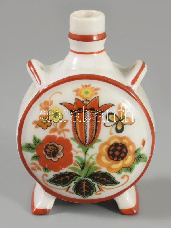 Zsolnay népi mintás kis kulacs, jelzett, hibátlan, m: 7,5 cm