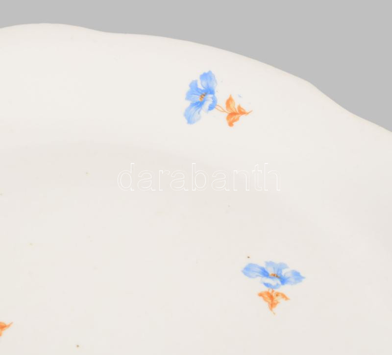 Zsolnay virágmintás kínáló, jelzett, kis kopással, d: 29 cm