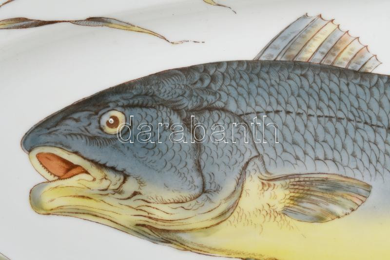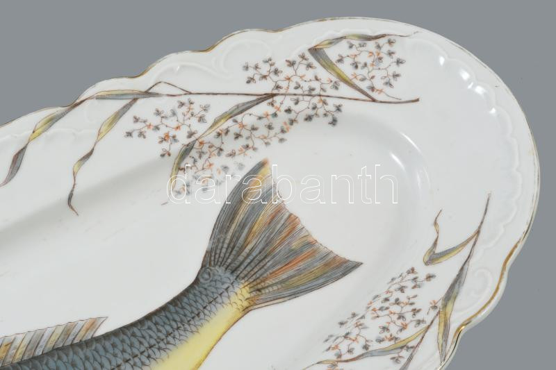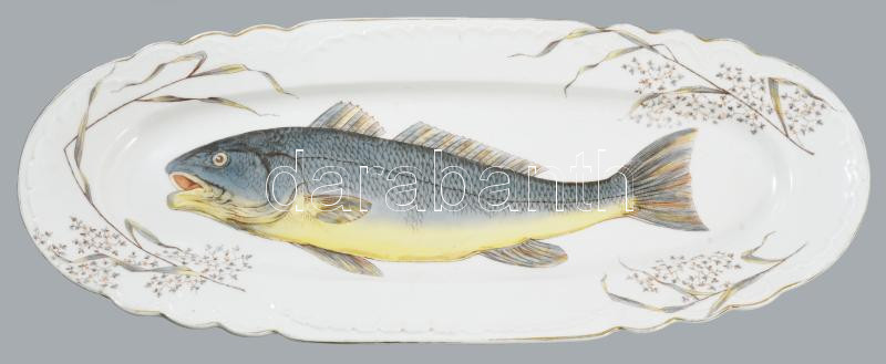cca 1880-1900 Nagyméretű halszervírozó tál, számozott, kopással, 61x15 cm