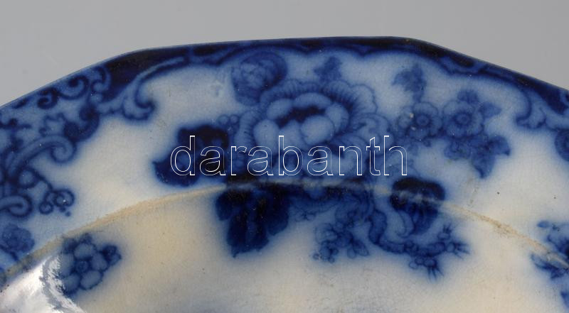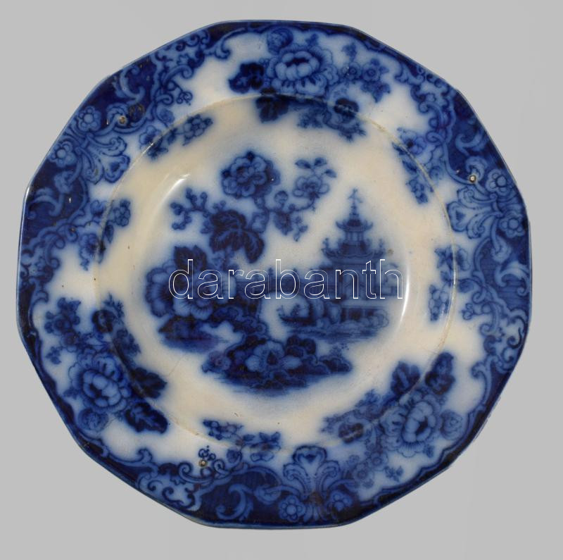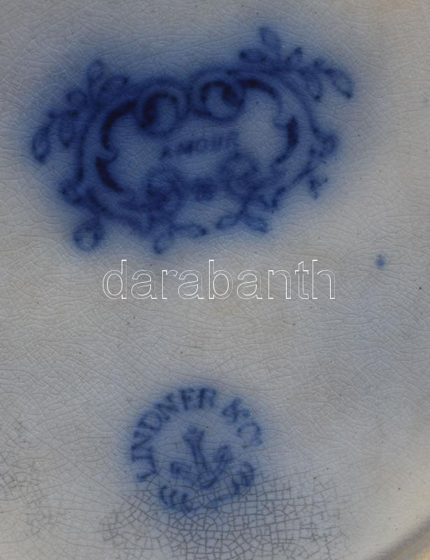cca 1880 Lindner & Co. máz alatti kék festéssel pagodás díszítésű tál, jelzett, kis repedésvonallal, d: 25 cm