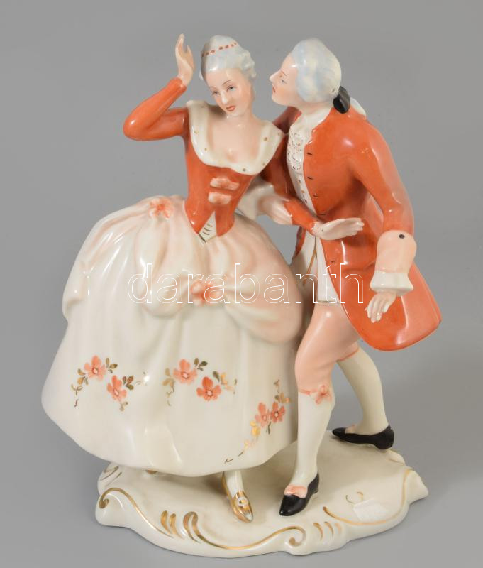 cca 1920 Royal Dux barokk pár, jelzett, hibátlan, m: 22 cm