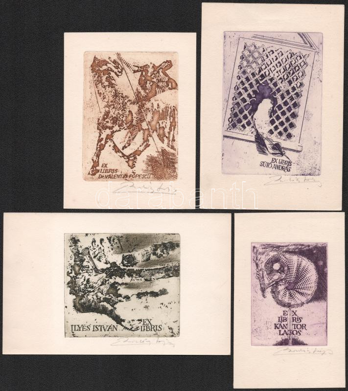 Bardócz Lajos (1936- ): 4 db ex libris (közte Sütő András), rézkarc, papír, jelzett, klf. méretekben