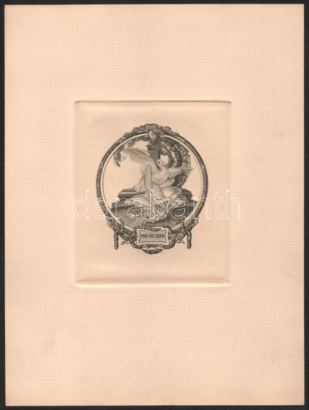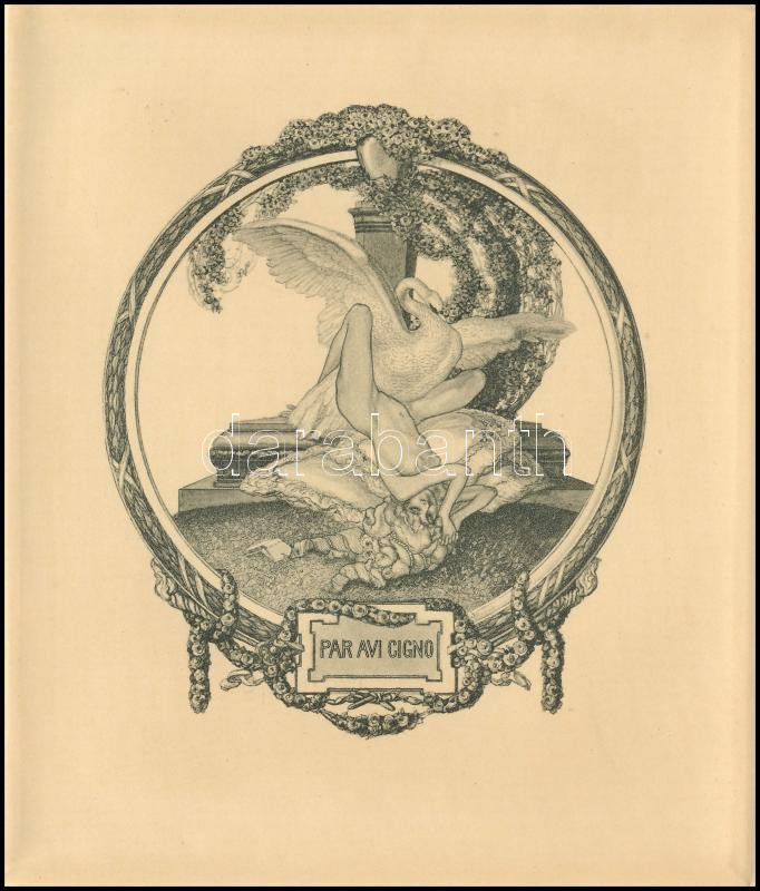 Franz von Bayros (1866-1924): Par avi cigno (Léda és a hattyú, erotikus kisgrafika). Heliogravür, papír, jelzett a nyomaton. Lapszéli apró elszíneződésekkel. 12,5x10,5 cm
