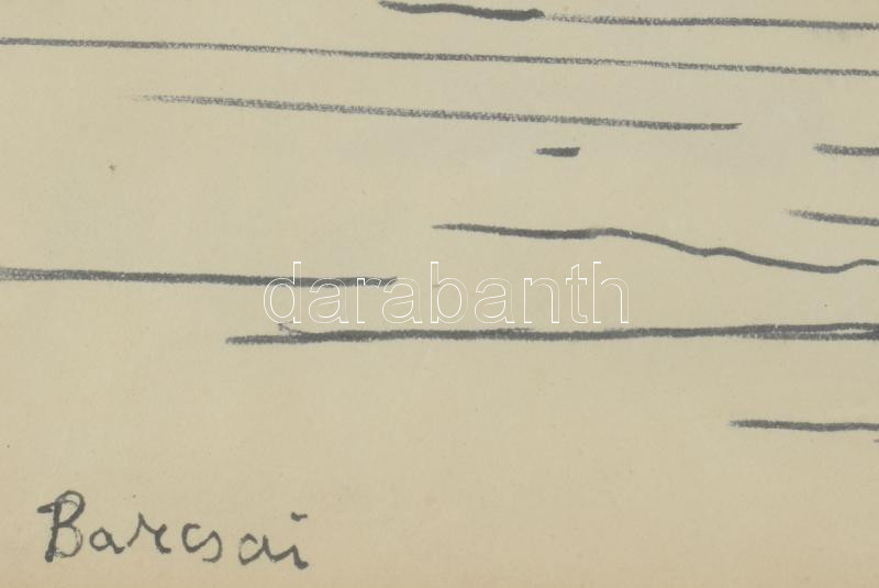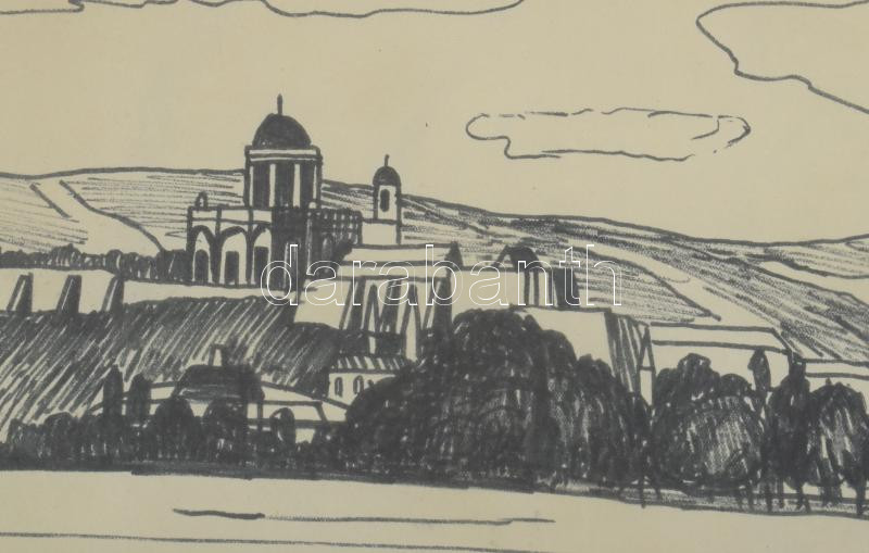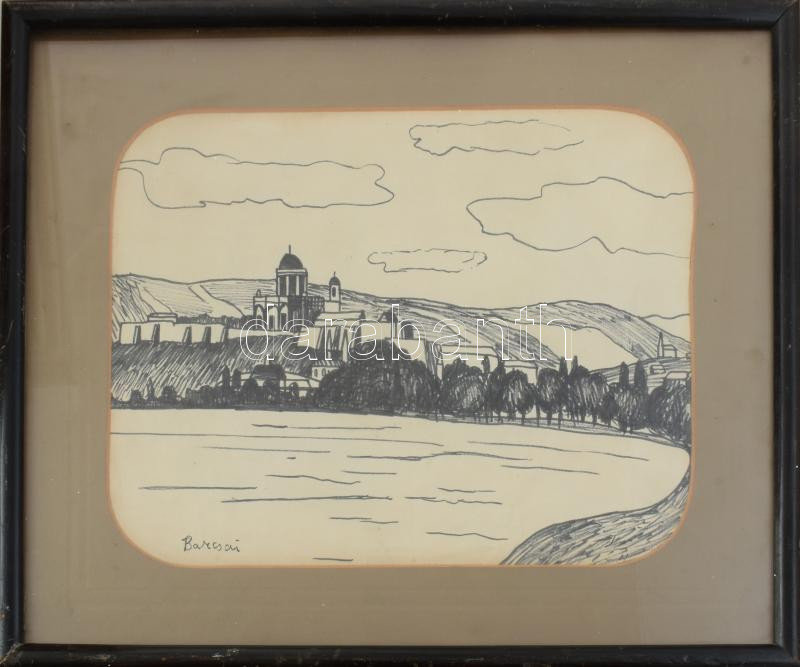 Barcsai Tibor (1937-2017): Esztergomi bazilika. Tus, papír, jelzett, üvegezett fakeretben, 22,5×28,5 cm