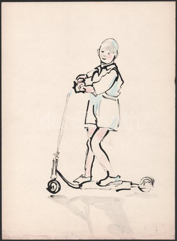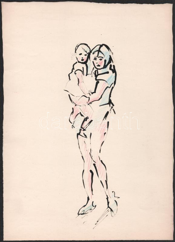 Barta Mária (1897-1969): 3 db akvarell, papír. Egyik jelzett, 29,5x21,5 és 24x33,5 cm közötti méretekben