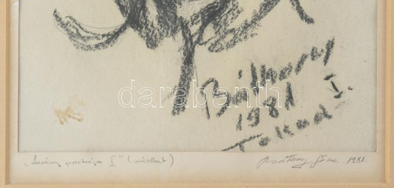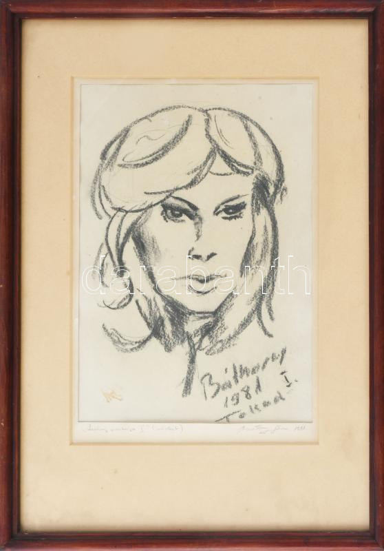 Báthory Géza (-): Leány portréja I. Kréta, papír, jelzett, kisebb folttal, üvegezett fakeretben, 27x19 cm