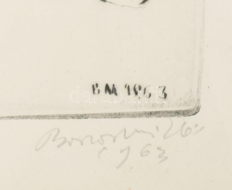 Borsos Miklós (1906-1990): Anya gyermekével. Hidegtű, papír, jelzett, üvegezett fakeretben, lapszéli kisebb ázásnyommal, 40x29,5 cm
